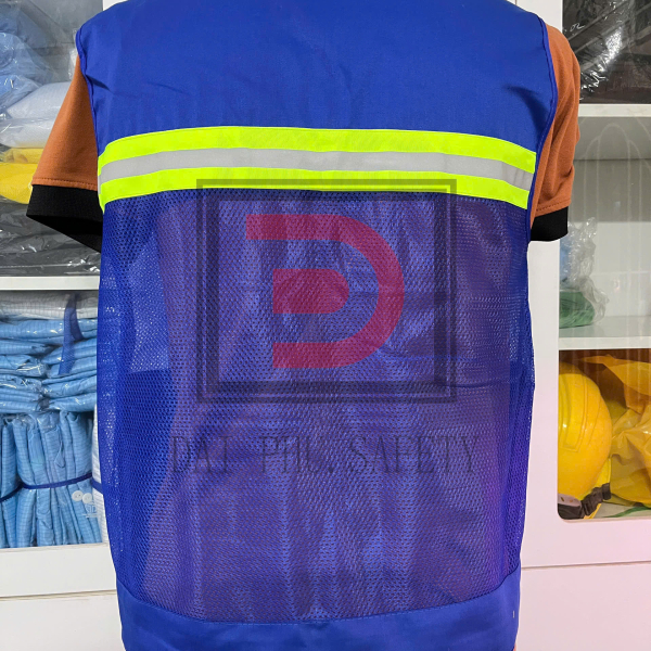 - Đặc điểm: Áo gile bảo hộ cho công nhân có may phối lưới, áo có 4 túi, và may phản quang ở đô trước, đô sau.