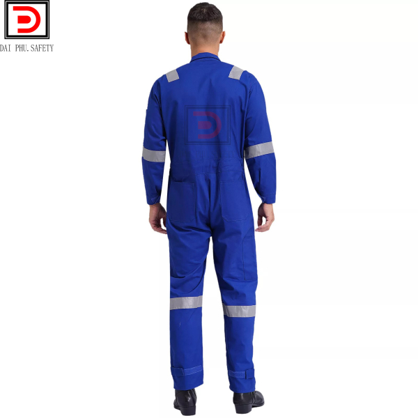 • Đặc điểm: Áo liền quần bảo hộ lao động được may liền thân, kiểu dáng nam tính trẻ trung. Áo có 2 túi trước ngực và 2 túi sau quần. Túi to có thể đựng dụng cụ làm việc. Áo may dây kéo và may phối phản quang cho công nhân làm trong môi trường tối.