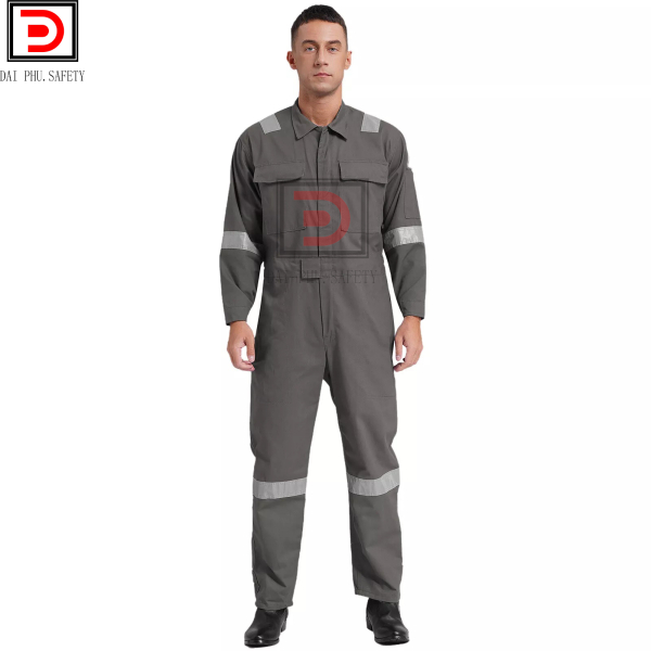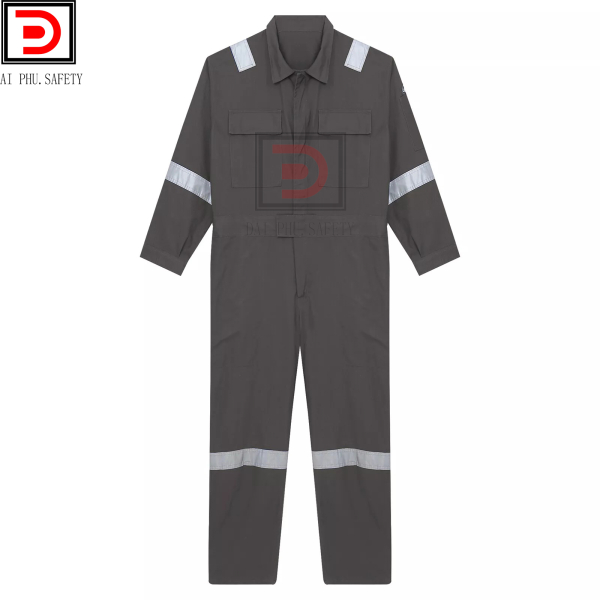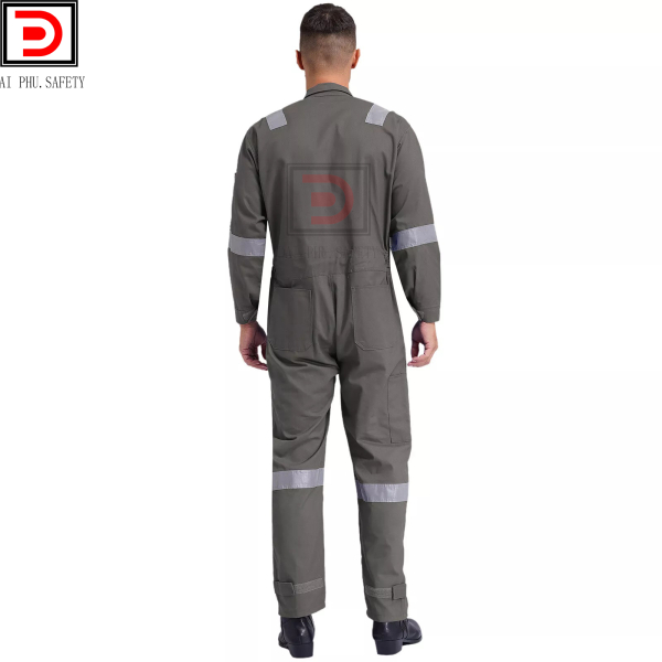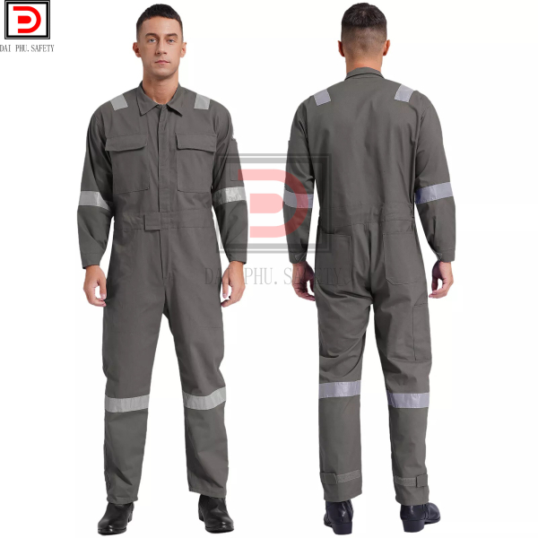 • Đặc điểm: Áo liền quần bảo hộ lao động được may liền thân, kiểu dáng nam tính trẻ trung. Áo có 2 túi trước ngực và 2 túi sau quần. Túi to có thể đựng dụng cụ làm việc. Áo may dây kéo và may phối phản quang cho công nhân làm trong môi trường tối.