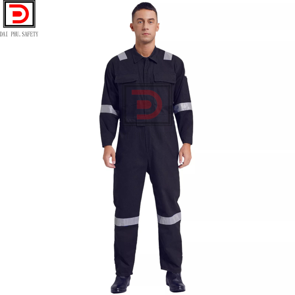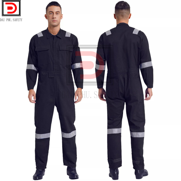 • Đặc điểm: Áo liền quần bảo hộ lao động được may liền thân, kiểu dáng nam tính trẻ trung. Áo có 2 túi trước ngực và 2 túi sau quần. Túi to có thể đựng dụng cụ làm việc. Áo may dây kéo và may phối phản quang cho công nhân làm trong môi trường tối.