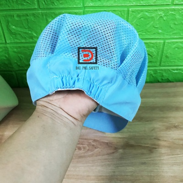 Nón mũ lưới trùm tóc công nhân màu biển được may bằng vải kate silk và lưới poly dày. Nón có may thun có giãn phía sau nón.